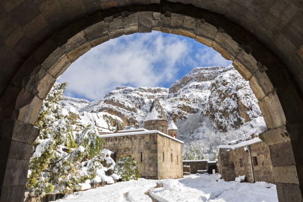 Dlatego zdjęciem wiodącym tego wpisu jest Monastyr Gerhard – skalny klasztor założony już w IV wieku n.e. przez samego Grzegorza Oświeciciela, który to przyniósł do Armenii chrześcijaństwo. Obecne zabudowania pochodzą niestety z XII wieku, ponieważ pierwotne zostały zniszczone. Że też komuś się chciało napadać na skalny klasztor w górach swoją drogą.