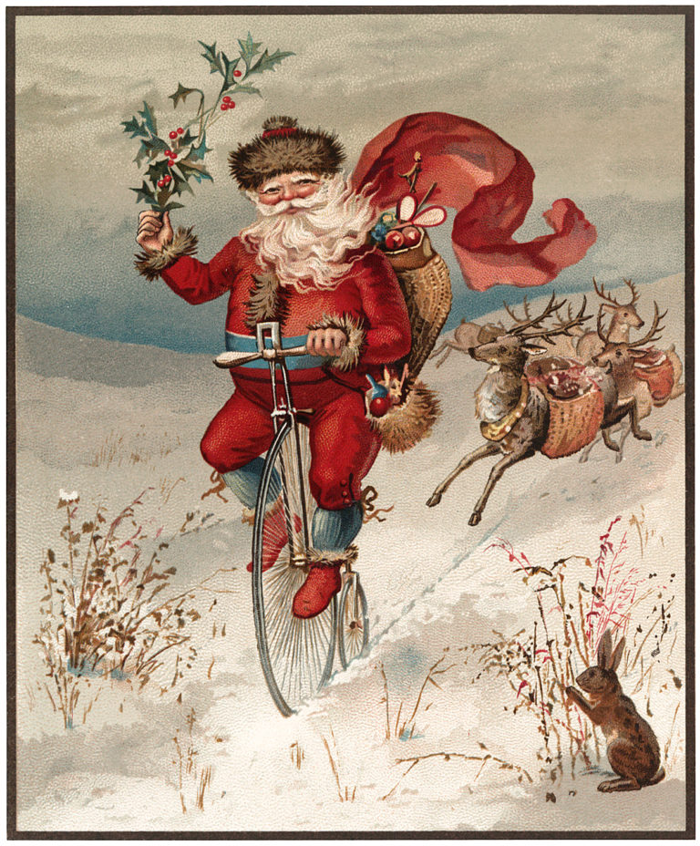 Zwróćcie uwagę na tę ilustrację, ponieważ dzisiejszy brytyjski Father Christmas podobnie jak święty Mikołaj ma już najczęściej całkiem nieswoją twarz Santa Clausa. Podobny los spotkał francuskiego Père Noël (Świątecznego Ojca), niemieckich Weihnachstmanna (świątecznego mężczyznę) i Pelznickla (Mikołaja w futrach), norweskiego Julenisse (świątecznego skrzata) czy fińskiego Joulupukki (świątecznego kozła). Co ciekawe, sama nazwa Joulupukki się zachowała i w efekcie tak właśnie po fińsku określany jest Santa Claus. Nawet wręczające dzieciom prezenty w niektórych regionach Niemiec Christkindl (czyli dzieciątko Jezus) zostało później przez Amerykanów niemieckiego pochodzenia zmieszane z Pelznicklem i nazwane Kris Kringlem (który to zasadzie już od początku wyglądał jak Santa Claus).